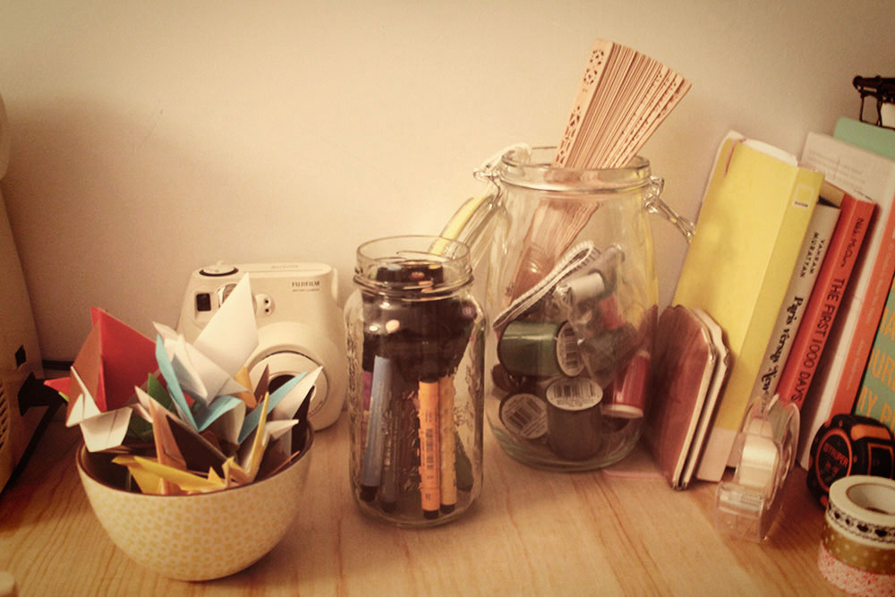 Finally I have a tiny corner for my projects, reading and crafty things.