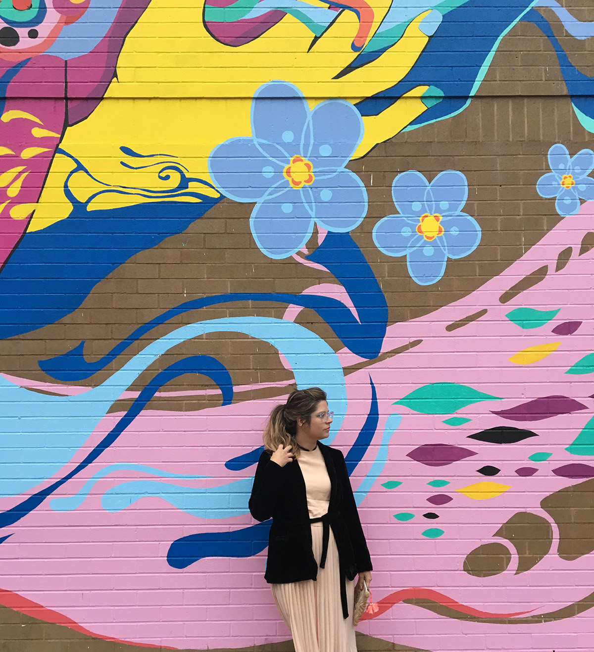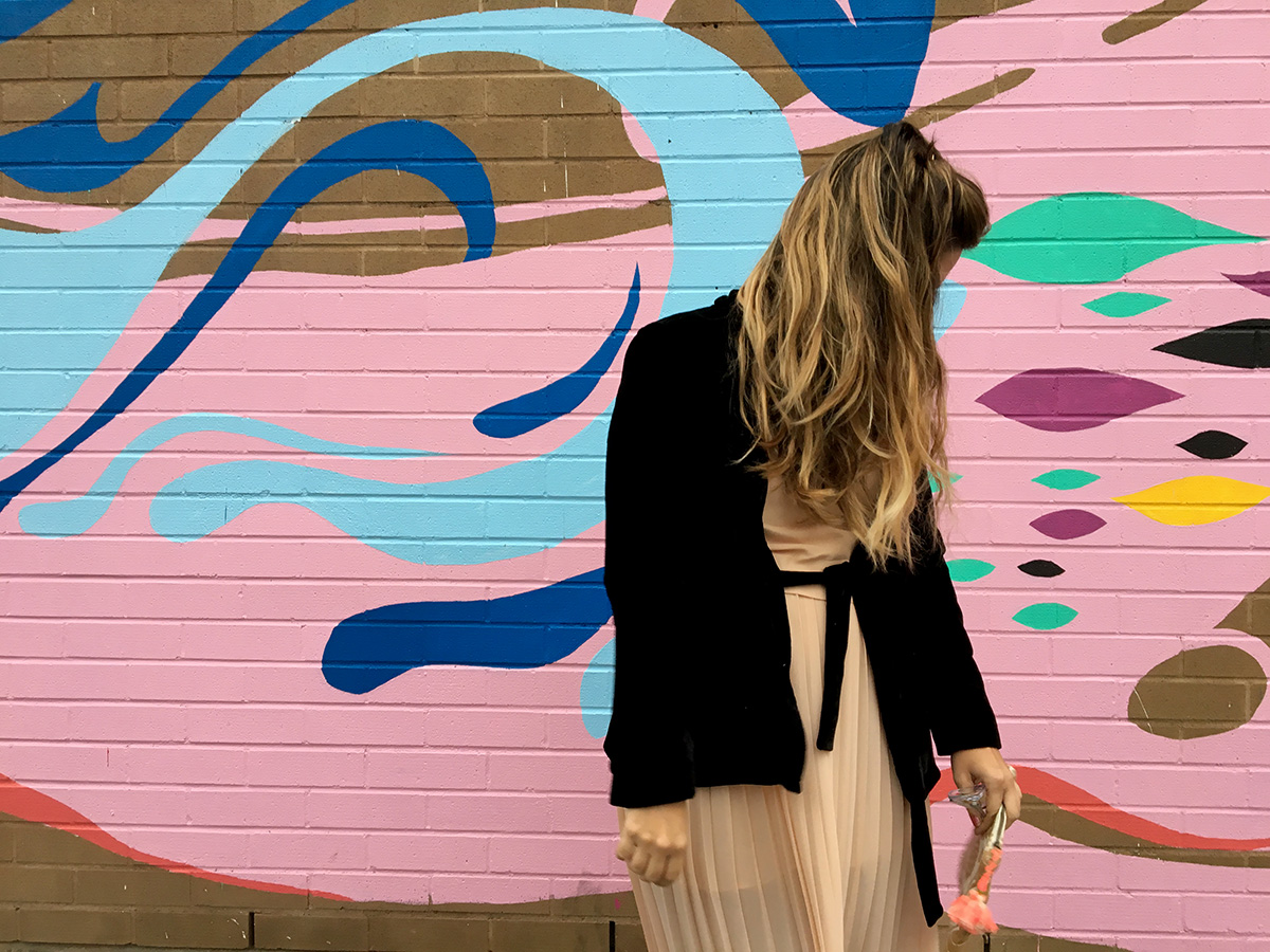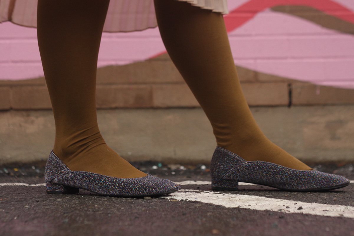 I have this thing with Velvet and Skirts, TA-daaaaa!I’ve been avoiding pants all winter long and I confess I love it. With the help of a cozy velvet jacket, tights, and my favorite pleated dress, I went out last week and enjoyed some drinks with friends.I believe in pretty little details when it comes to styling my outfits, like some good sparkly shoes, a cute boho clutch and some really fun colorful tights (you can shop the look at the end of this post, as always!)How was your weekend? Any big plans?