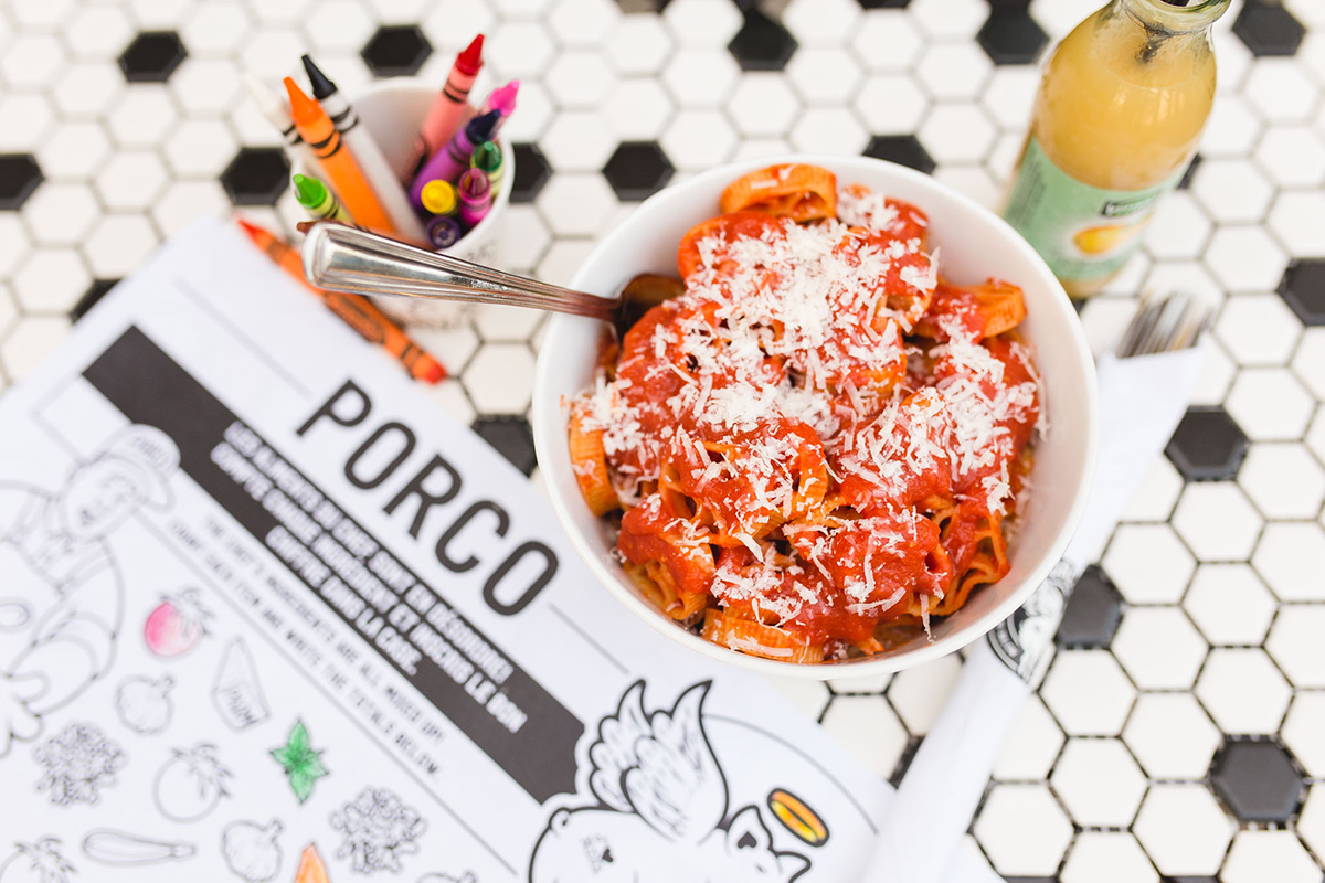 | kids menu and coloring pages with the sweetest Porco designs! I can’t wait to bring Oli and Nico already. |