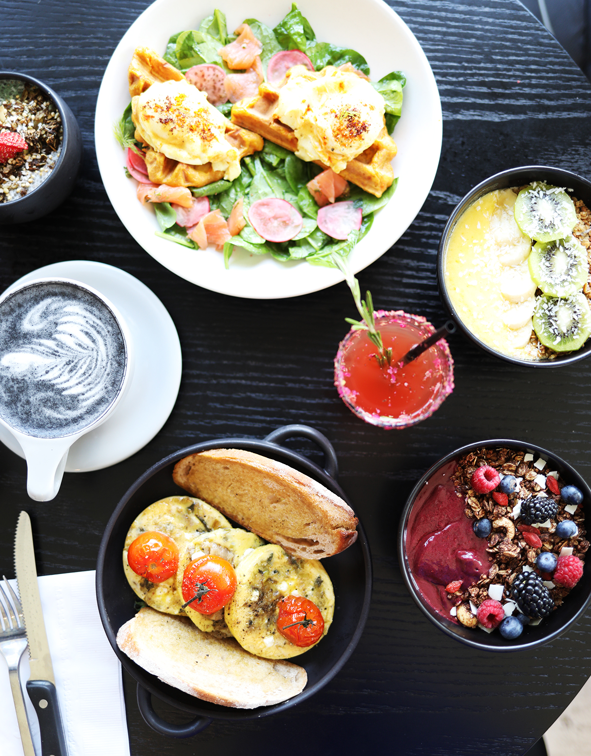 | I grabbed my girlfriends Josie, Danielle, Eli, and Jessica and went to Barleys one cute morning together. The menu is pretty classic always including their delish smoothie bowls and new items like:- Matcha pancakes- French toast croissant- Sweet potato waffles- Frittata- Halumi salad- French toast briocheI tried the Frittata, served with fresh spinach, cherry tomatoes, mushrooms and feta cheese.Miam! |